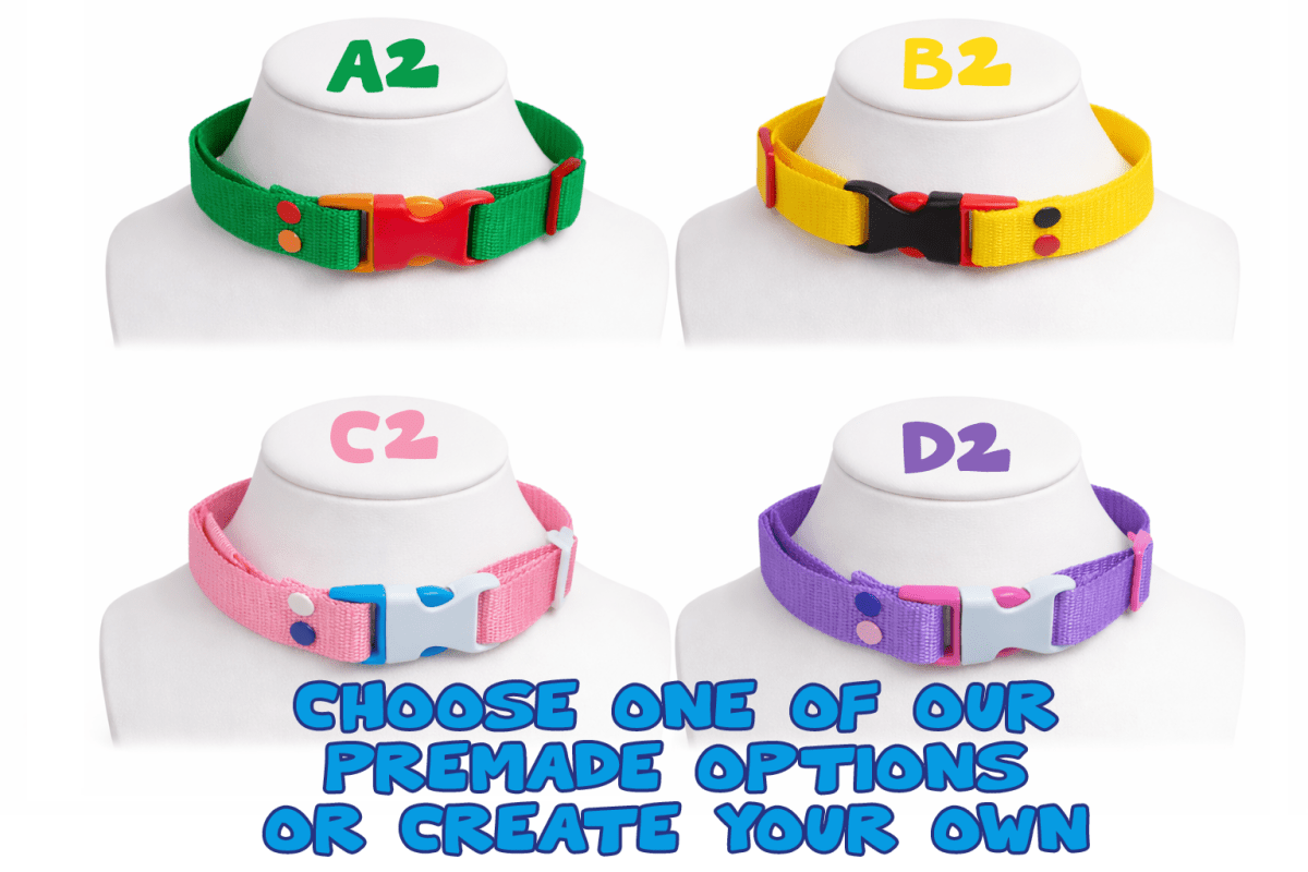 The colour chart shown for custom collars applies to all parts of the collar (straps, buckles, studs).